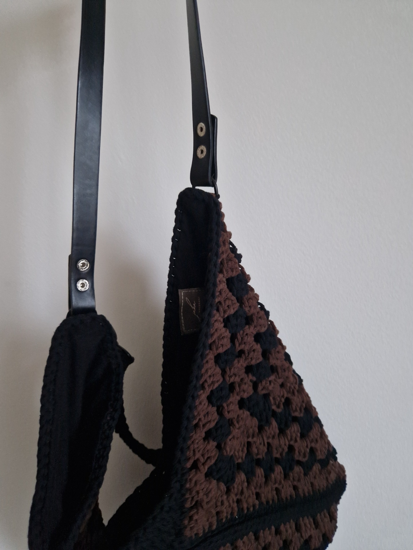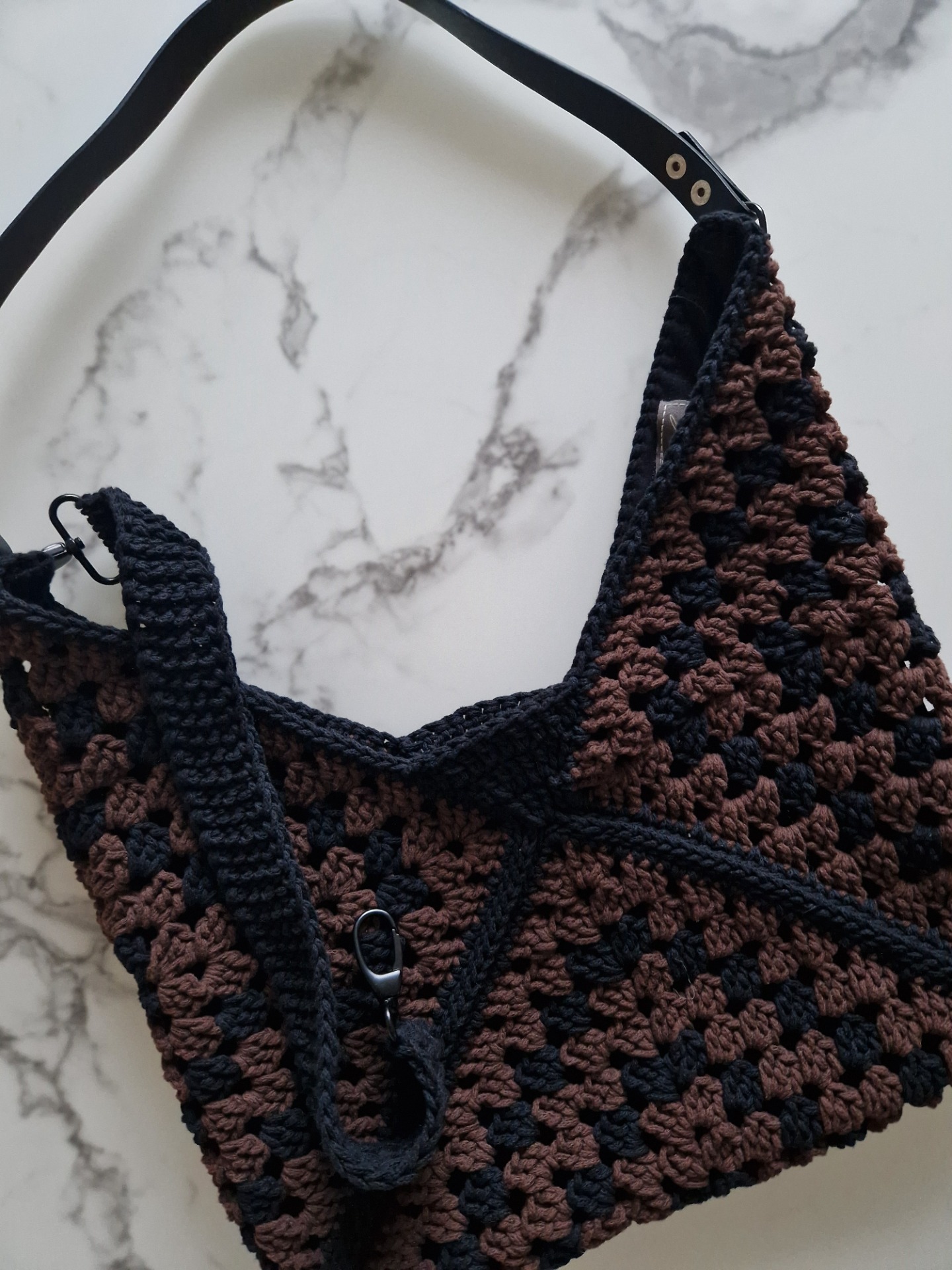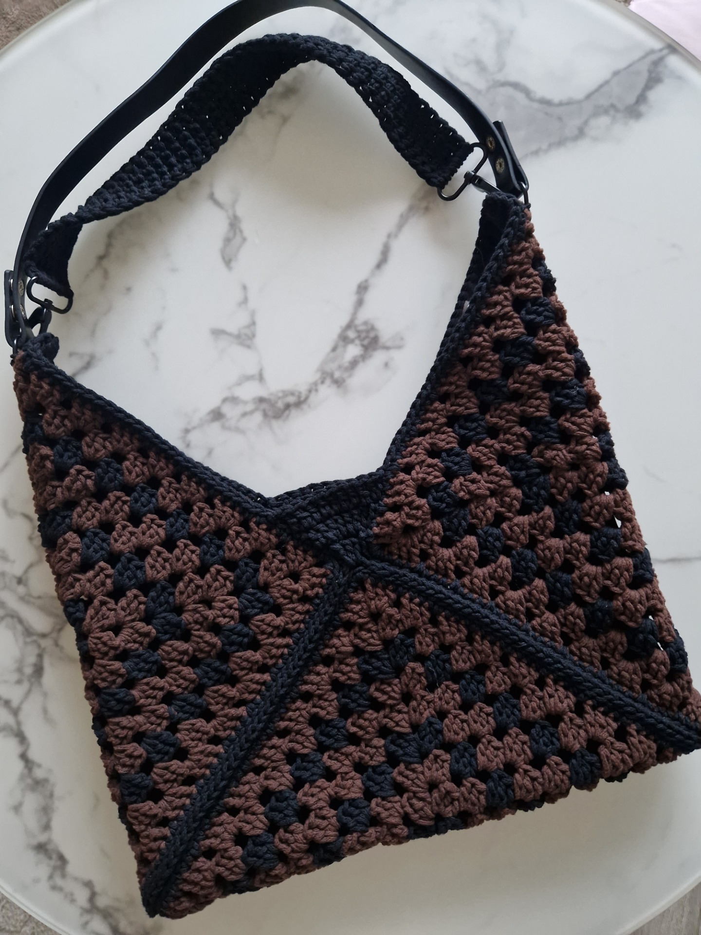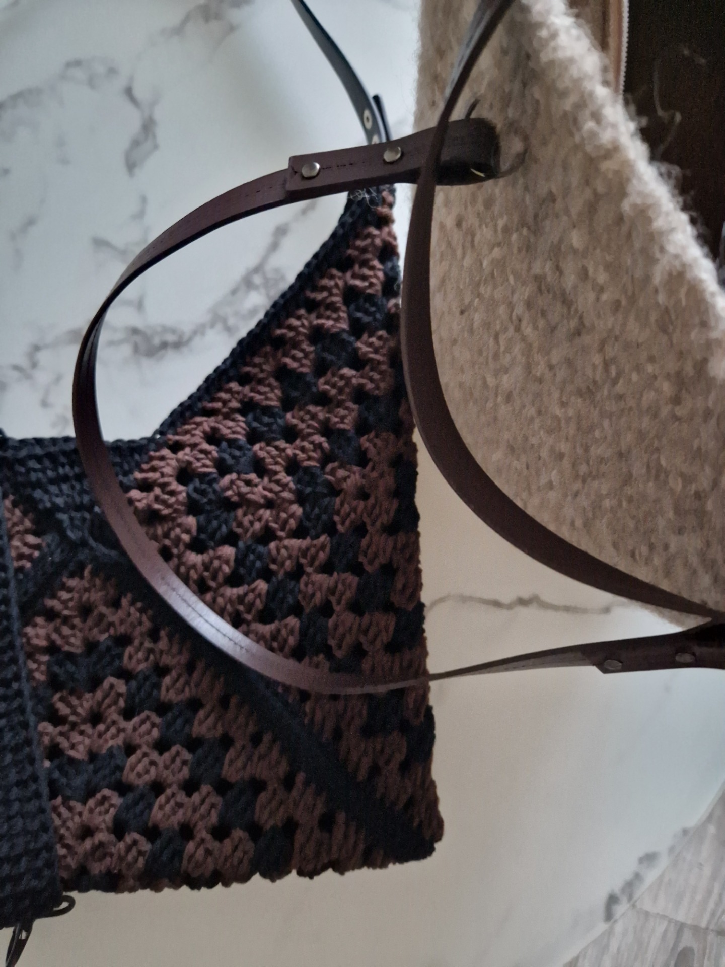 Informácie o materiáloch: Kabelka je ručne háčková. Použitý je materiál bavlnený špagát vyrobený na Slovensku. Súčasťou kabelky je koženkový remienok a zapínanie na magnet.