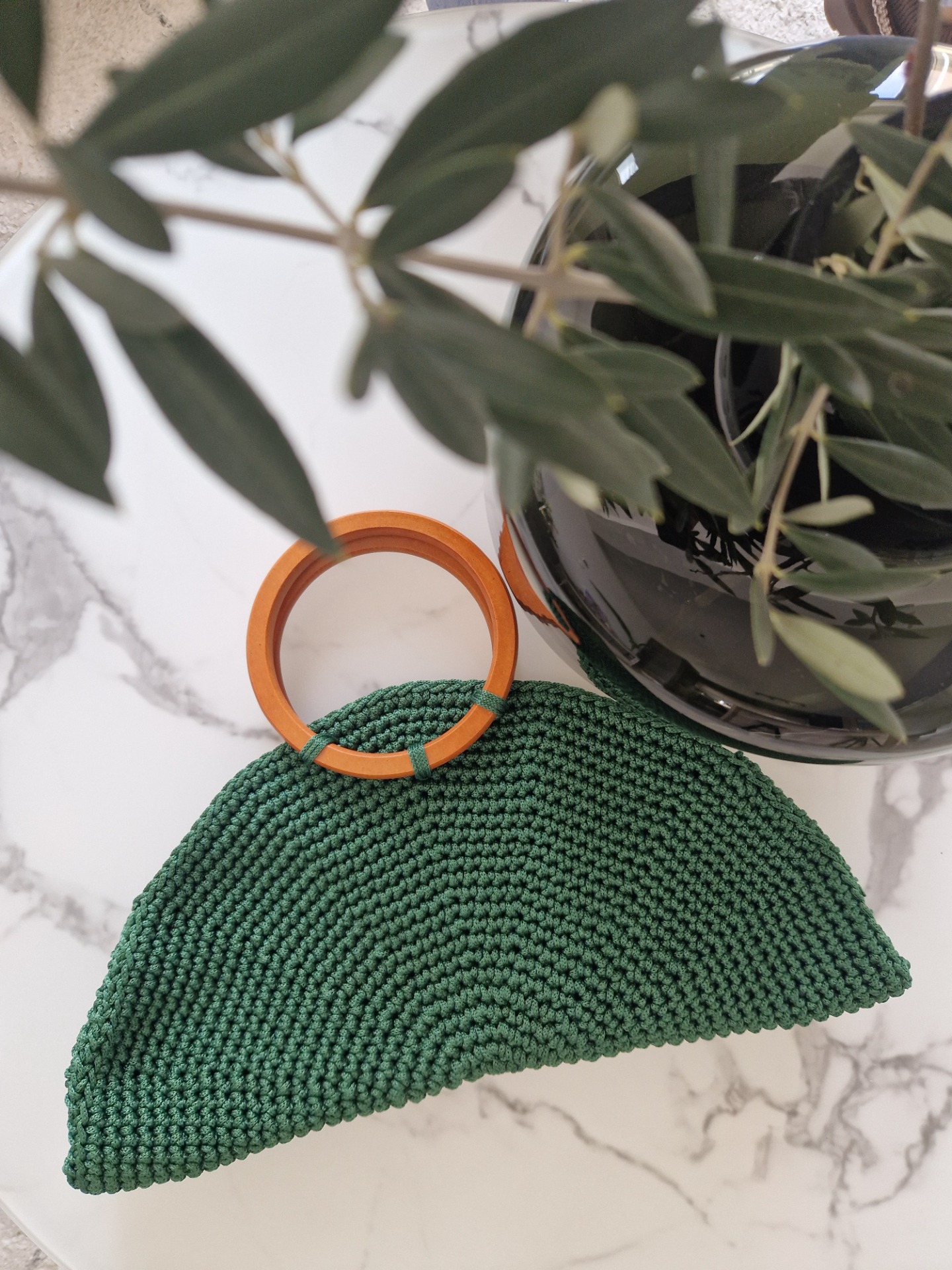 Informácie o materiáloch: Kabelka je ručne háčková. Použitý je materiál bavlnený špagát vyrobený na Slovensku. Súčasťou kabelky sú drevené rúčky a vnútorná látková podšívka.